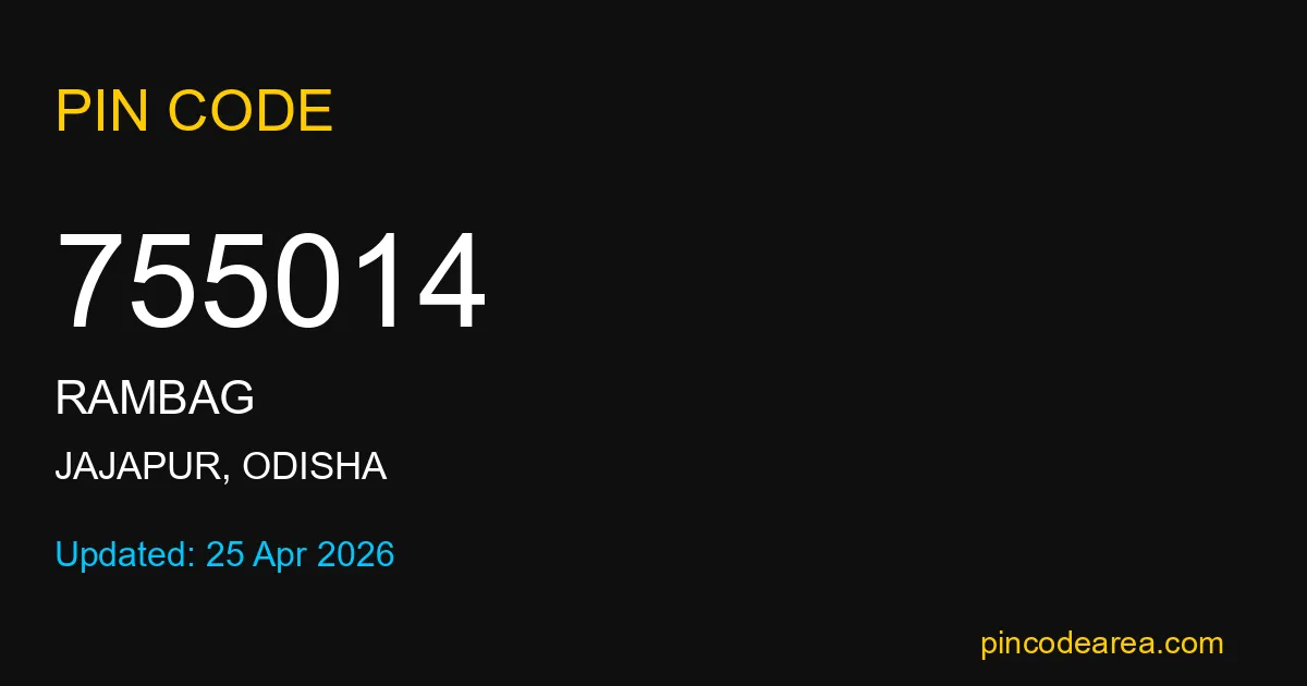 755014 PIN Code is assigned to Rambag Post Office located in Jajapur district of Odisha. It helps in identifying the exact delivery area.