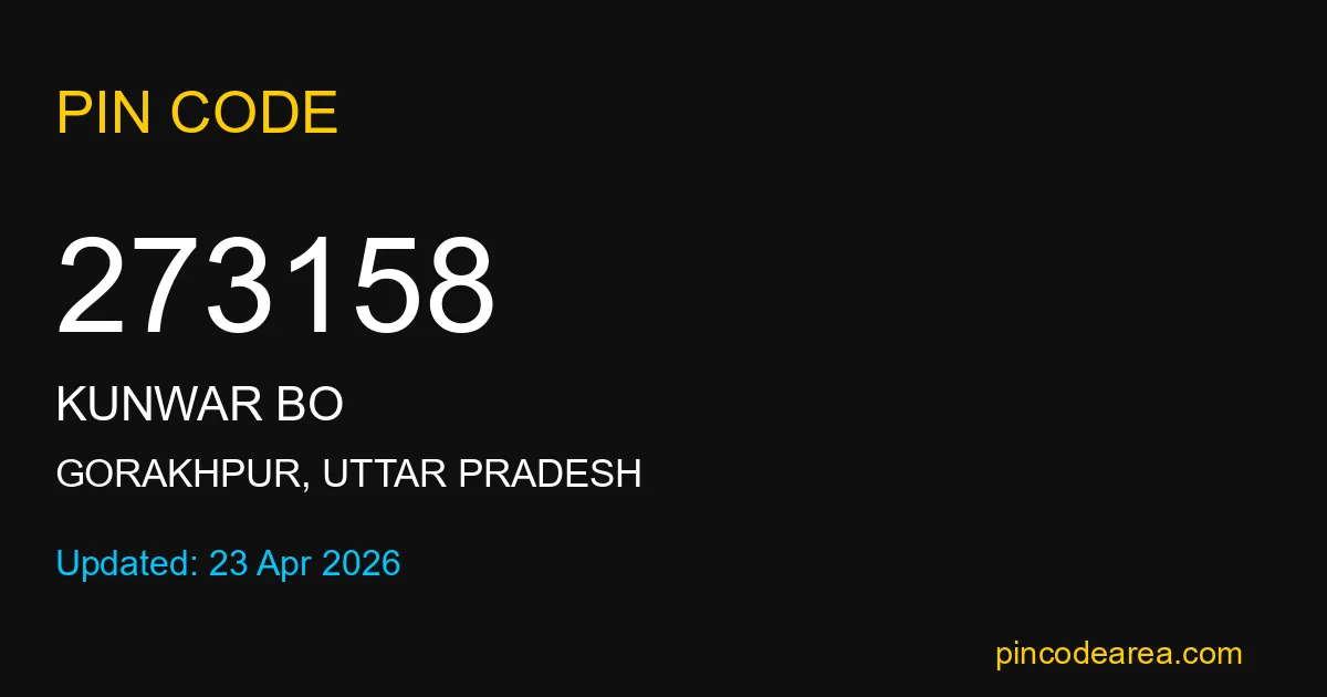 273158 PIN Code belongs to Kunwar BO Post Office in Gorakhpur district of Uttar Pradesh, India. This area mainly includes local residential and rural regions where India Post ensures timely mail and parcel delivery services.