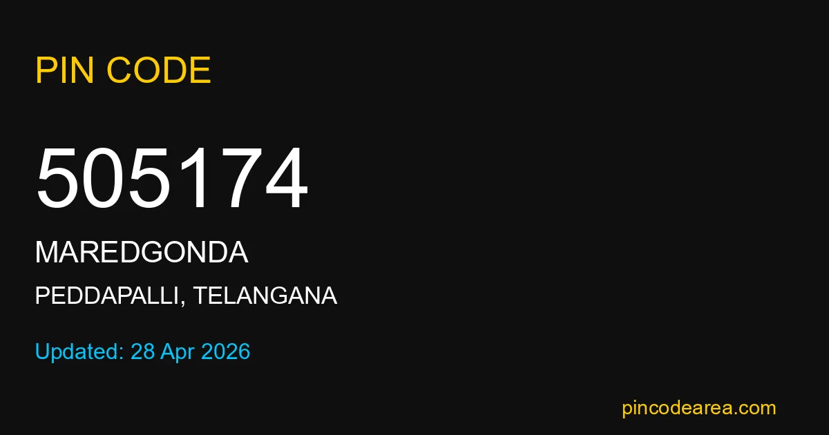 505174 PIN Code is assigned to Maredgonda Post Office located in Peddapalli district of Telangana. It helps identify the exact delivery area for postal and courier services.