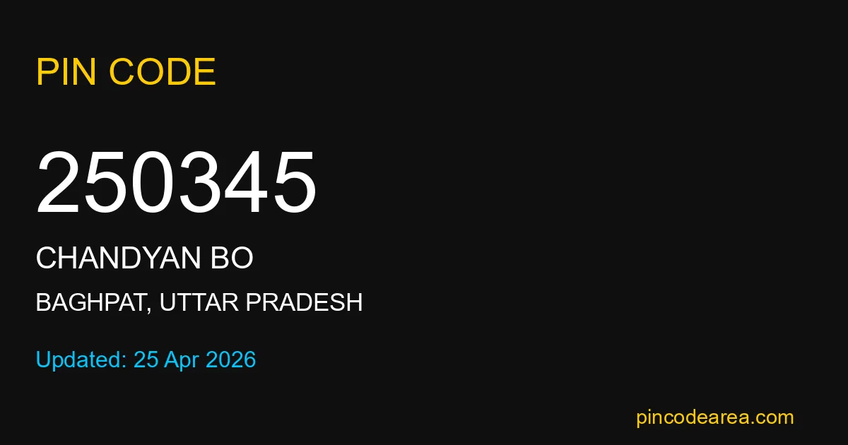 If you are searching for accurate location details, 250345 helps identify the exact postal region of Chandyan BO in Uttar Pradesh.