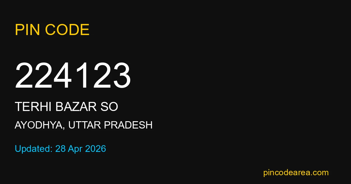 224123 PIN Code belongs to Terhi Bazar SO Post Office in Ayodhya district of Uttar Pradesh, India. This area mainly includes local residential and rural regions where India Post ensures timely mail and parcel delivery services.