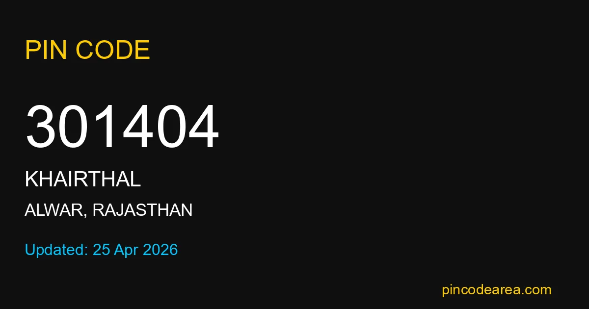 If you are searching for accurate location details, 301404 helps identify the exact postal region of Khairthal in Rajasthan.