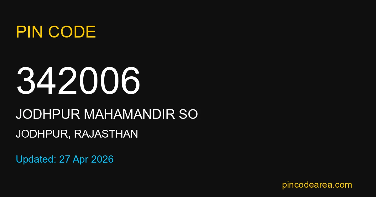 If you are searching for accurate location details, 342006 helps identify the exact postal region of Jodhpur Mahamandir SO in Rajasthan.