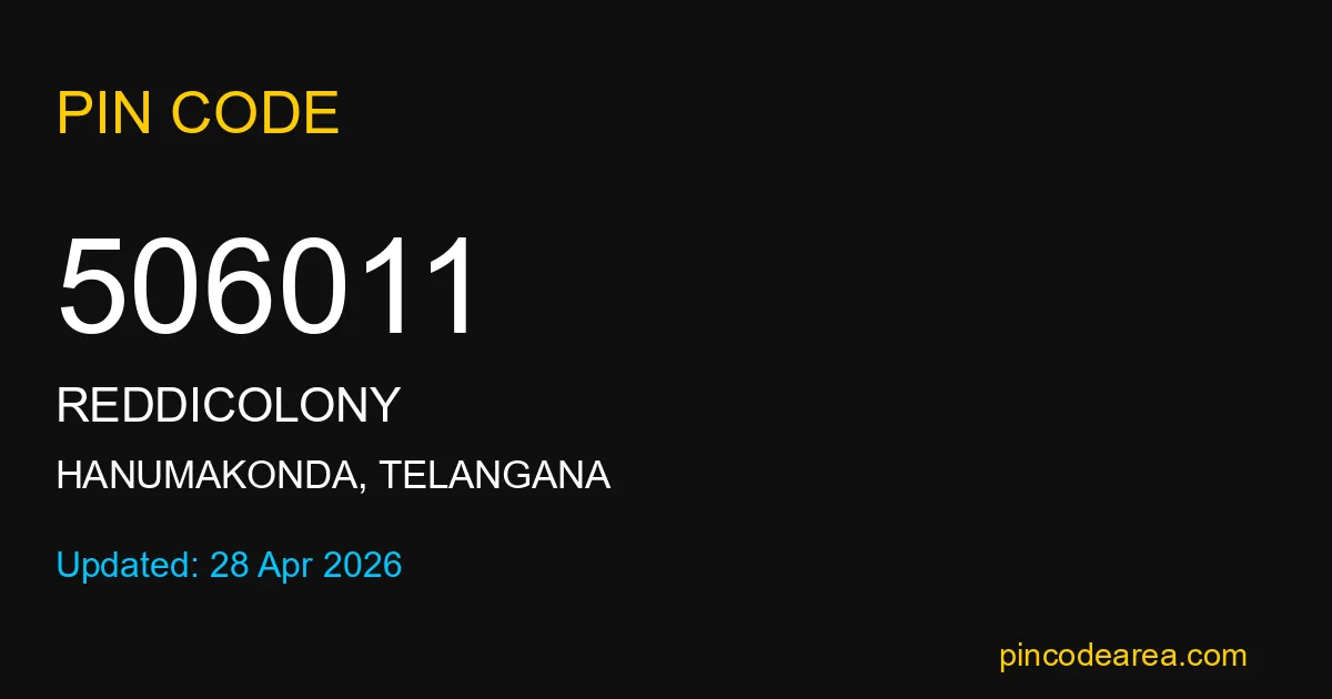 506011 PIN Code is assigned to Reddicolony Post Office located in Hanumakonda district of Telangana. It helps identify the exact delivery area for postal and courier services.