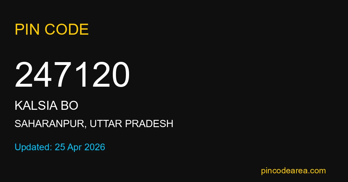 If you are searching for accurate location details, 247120 helps identify the exact postal region of Kalsia BO in Uttar Pradesh.