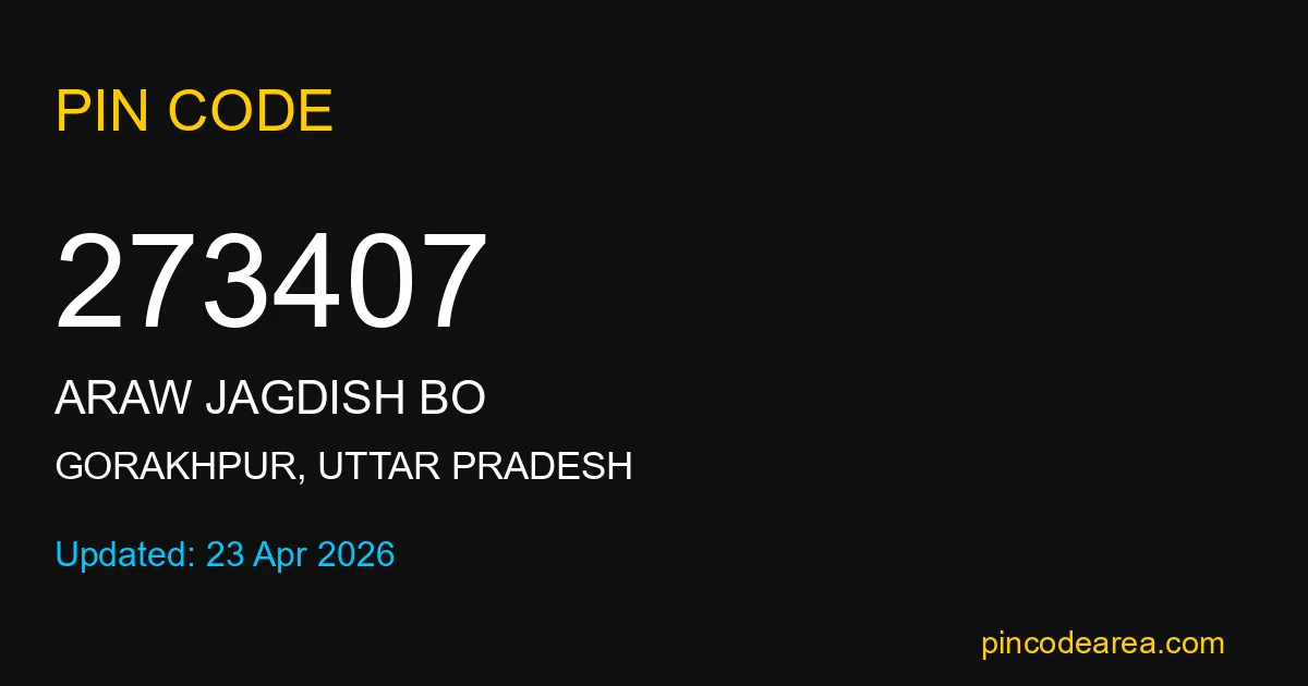 If you are searching for accurate location details, 273407 helps identify the exact postal region of Araw jagdish BO in Uttar Pradesh.