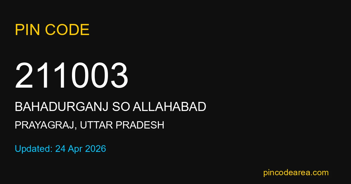 211003 PIN Code belongs to Bahadurganj SO Allahabad Post Office in Prayagraj district of Uttar Pradesh, India. This area mainly includes local residential and rural regions where India Post ensures timely mail and parcel delivery services.