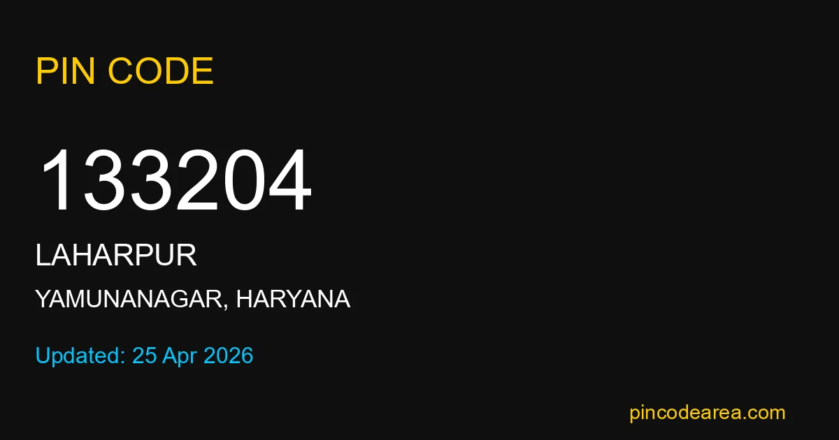 133204 PIN Code is assigned to Laharpur Post Office located in Yamunanagar district of Haryana. It helps in identifying the exact delivery area.