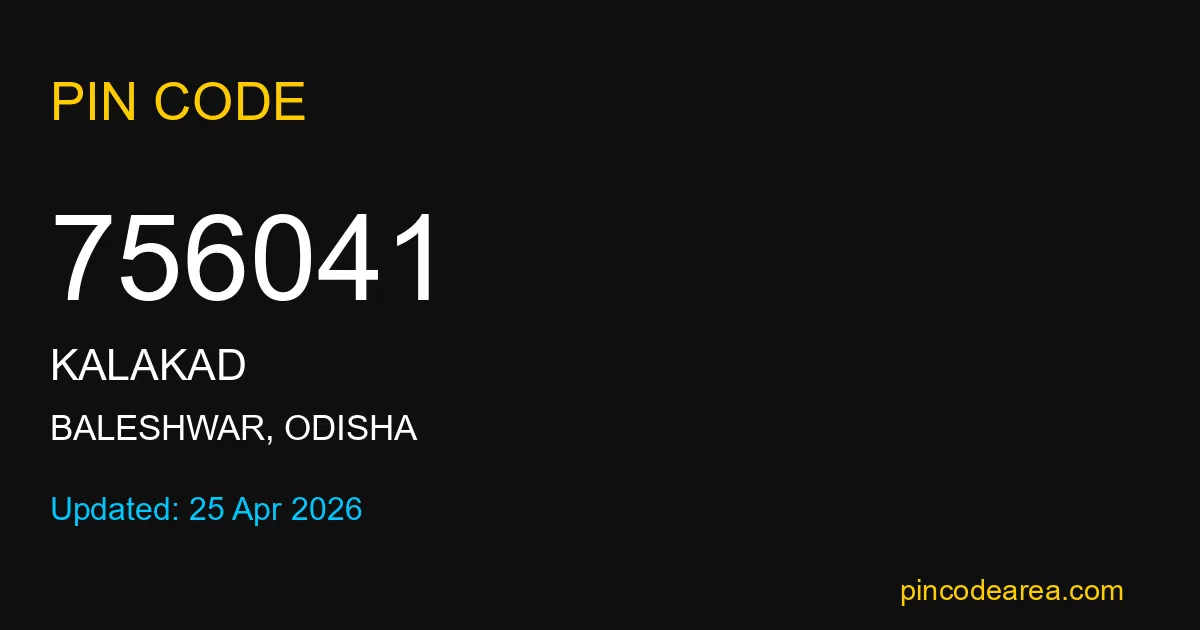 If you are searching for accurate location details, 756041 helps identify the exact postal region of Kalakad in Odisha.
