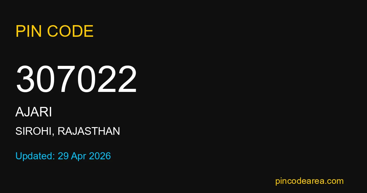 If you are searching for accurate location details, 307022 helps identify the exact postal region of Ajari in Rajasthan.
