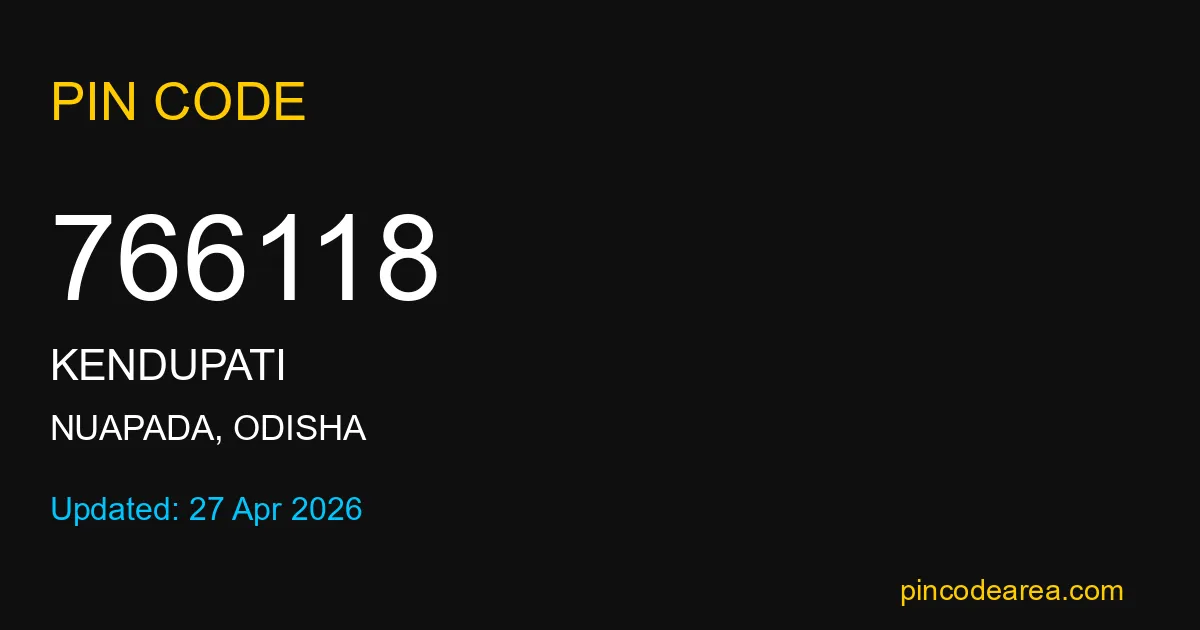 766118 PIN Code is assigned to Kendupati Post Office located in Nuapada district of Odisha. It helps identify the exact delivery area for postal and courier services.