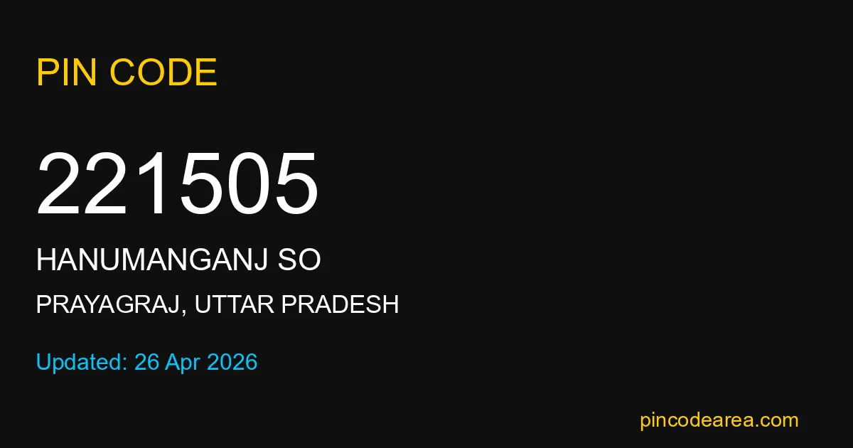 221505 PIN Code belongs to Hanumanganj SO Post Office in Prayagraj district of Uttar Pradesh, India. This area mainly includes local residential and rural regions where India Post ensures timely mail and parcel delivery services.