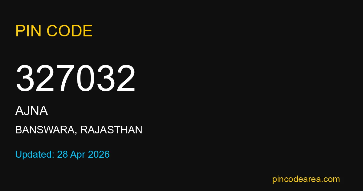 If you are searching for accurate location details, 327032 helps identify the exact postal region of Ajna in Rajasthan.