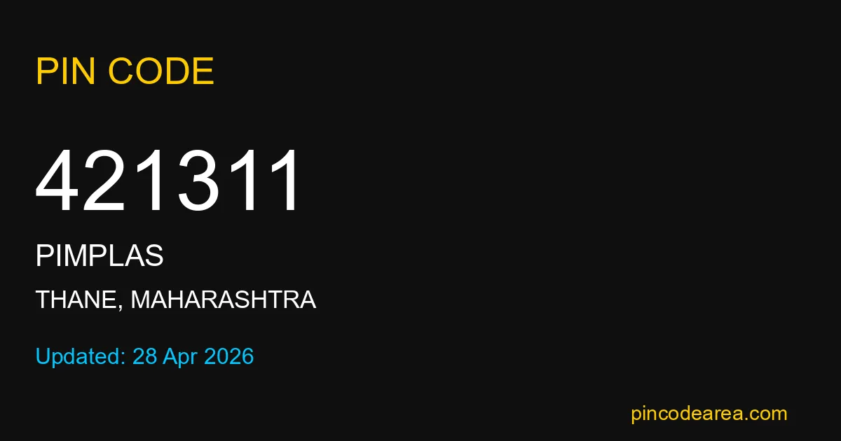 421311 PIN Code is assigned to Pimplas Post Office located in Thane district of Maharashtra. It helps identify the exact delivery area for postal and courier services.