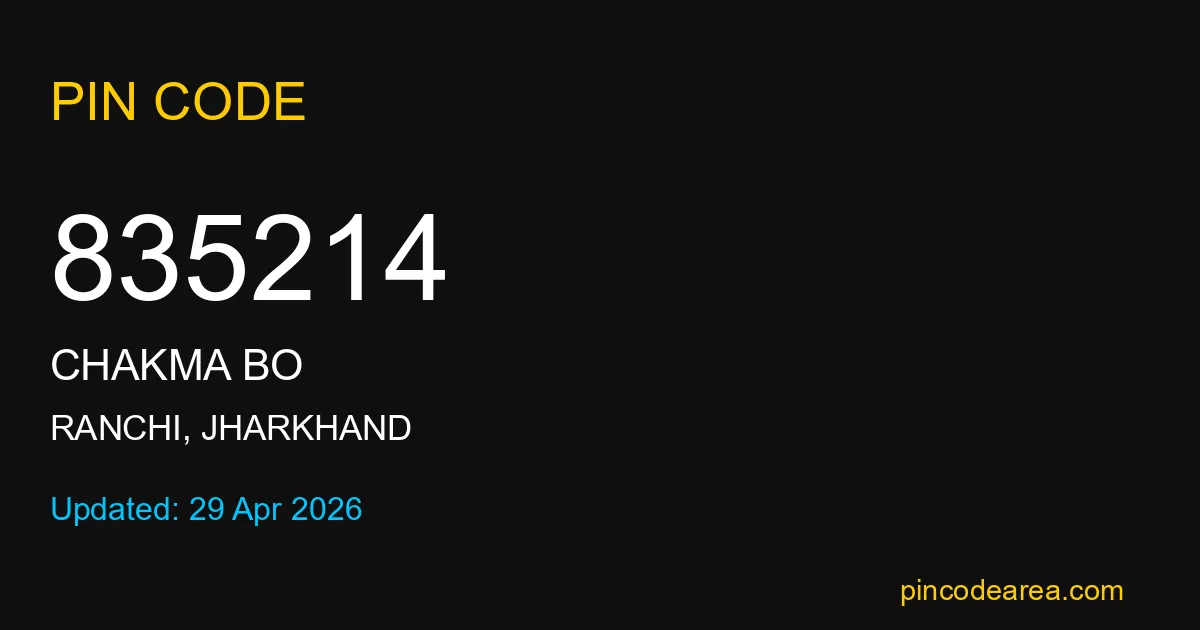 If you are searching for accurate location details, 835214 helps identify the exact postal region of Chakma BO in Jharkhand.