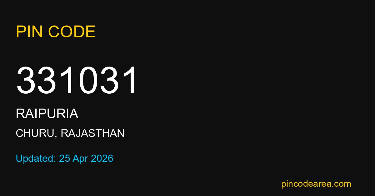 If you are searching for accurate location details, 331031 helps identify the exact postal region of Raipuria in Rajasthan.