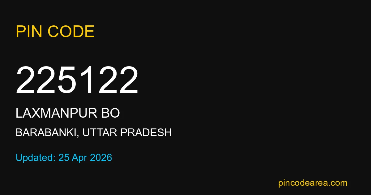225122 PIN Code belongs to Laxmanpur BO Post Office in Barabanki district of Uttar Pradesh, India. This area mainly includes local residential and rural regions where India Post ensures timely mail and parcel delivery services.