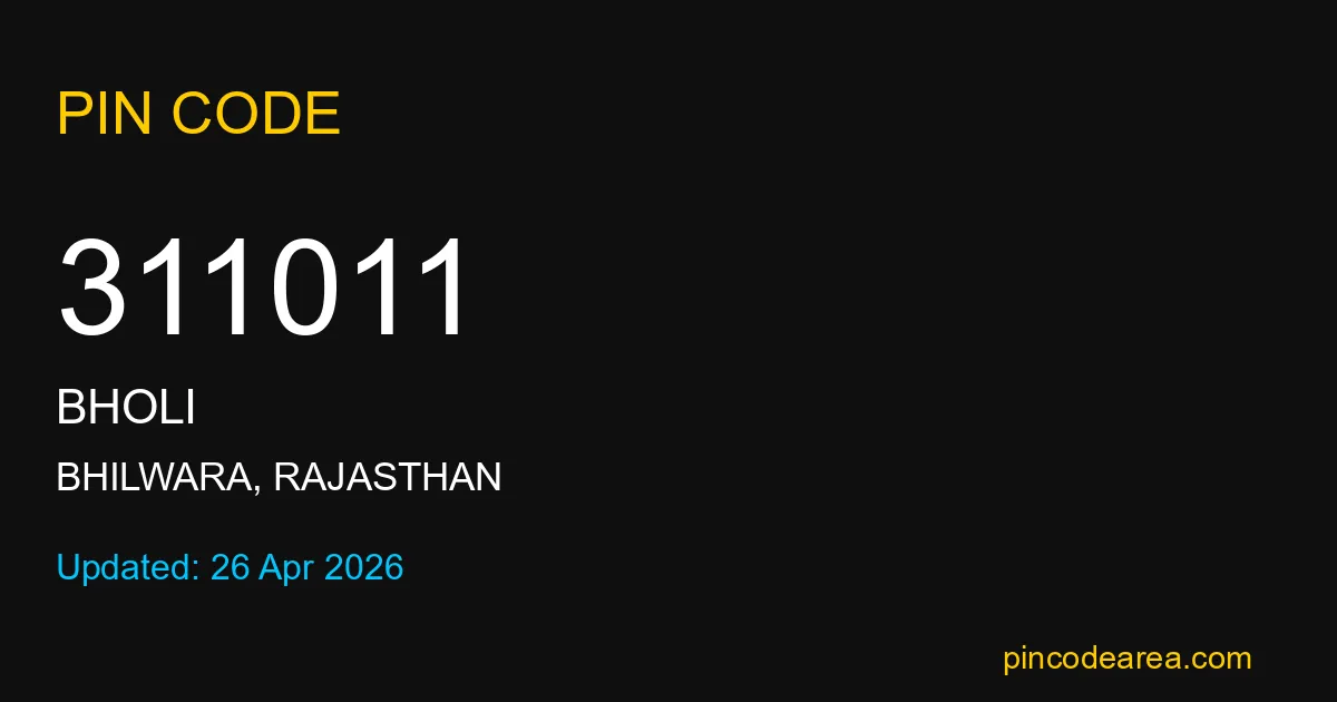 If you are searching for accurate location details, 311011 helps identify the exact postal region of Bholi in Rajasthan.