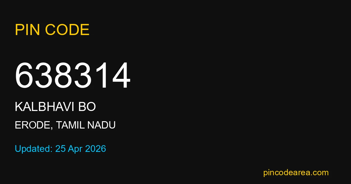 Many users search for 638314 PIN Code to confirm address details, track courier services, and ensure correct delivery location in Erode district.