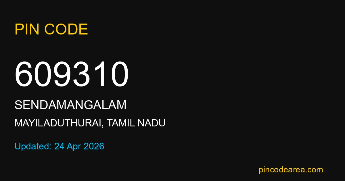 If you are searching for accurate location details, 609310 helps identify the exact postal region of Sendamangalam in Tamil Nadu.