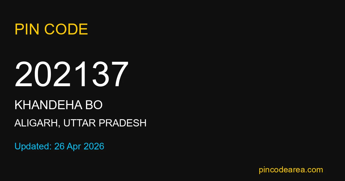 202137 PIN Code is assigned to Khandeha BO Post Office located in Aligarh district of Uttar Pradesh. It helps identify the exact delivery area for postal and courier services.