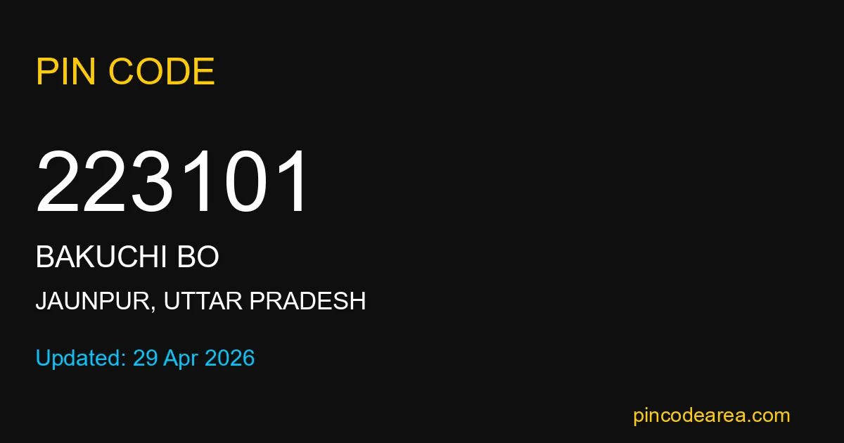 223101 PIN Code is assigned to Bakuchi BO Post Office located in Jaunpur district of Uttar Pradesh. It helps identify the exact delivery area for postal and courier services.