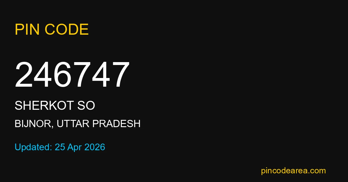 If you are searching for accurate location details, 246747 helps identify the exact postal region of Sherkot SO in Uttar Pradesh.