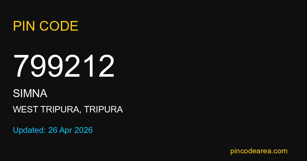 If you are searching for accurate location details, 799212 helps identify the exact postal region of Simna in Tripura.