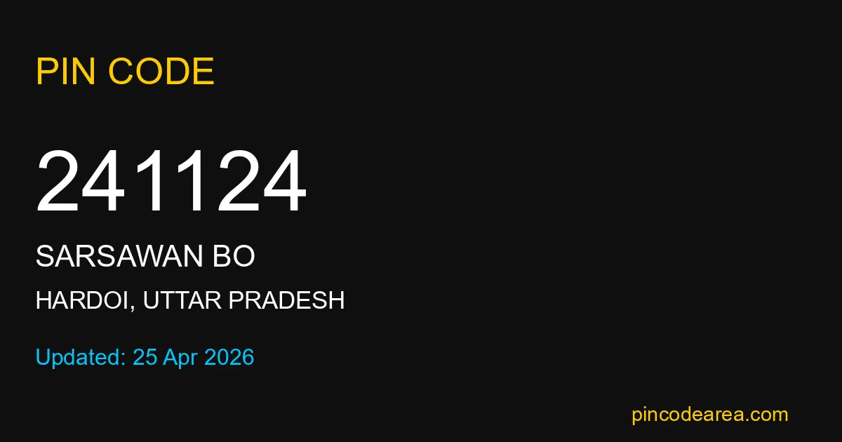 241124 PIN Code is assigned to Sarsawan BO Post Office located in Hardoi district of Uttar Pradesh. It helps in identifying the exact delivery area.