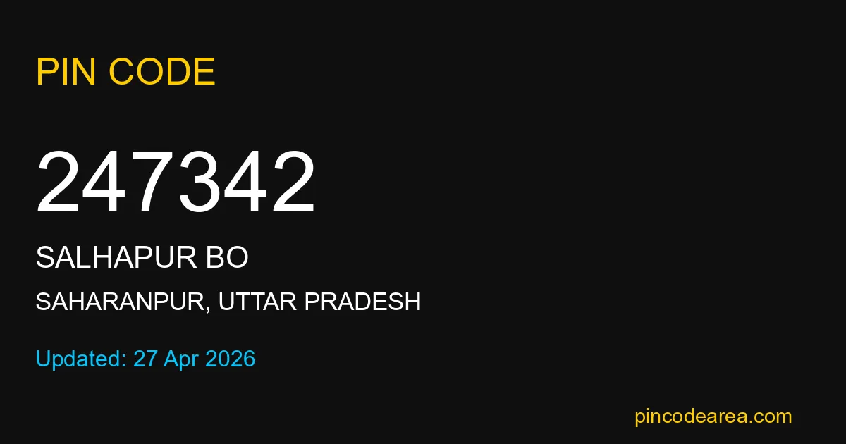 247342 PIN Code is assigned to Salhapur BO Post Office located in Saharanpur district of Uttar Pradesh. It helps identify the exact delivery area for postal and courier services.