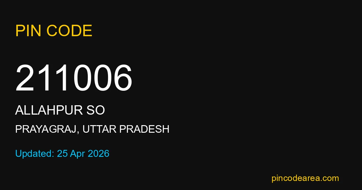 211006 PIN Code belongs to Allahpur SO Post Office in Prayagraj district of Uttar Pradesh, India. This area mainly includes local residential and rural regions where India Post ensures timely mail and parcel delivery services.