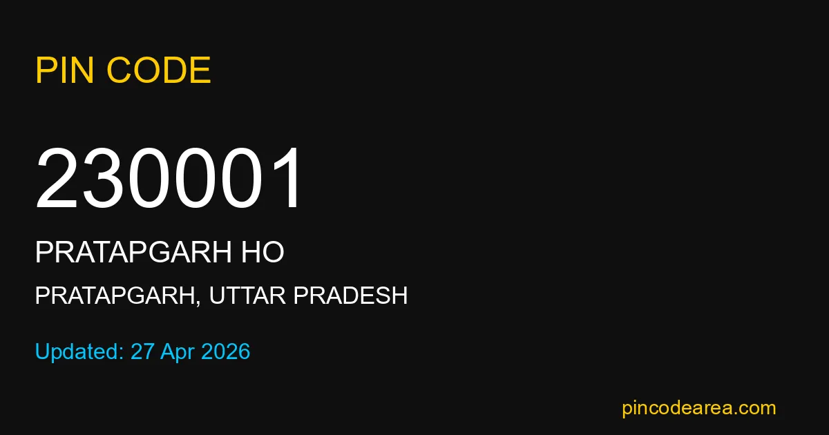 230001 PIN Code is assigned to Pratapgarh HO Post Office located in Pratapgarh district of Uttar Pradesh. It helps identify the exact delivery area for postal and courier services.