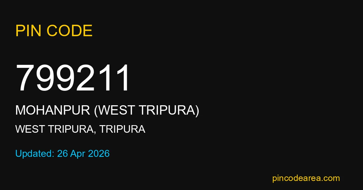 799211 PIN Code belongs to Mohanpur (West Tripura) Post Office in West Tripura district of Tripura, India. This area mainly includes local residential and rural regions where India Post ensures timely mail and parcel delivery services.