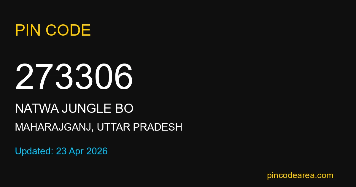 273306 PIN Code is assigned to Natwa Jungle BO Post Office located in Maharajganj district of Uttar Pradesh. It helps in identifying the exact delivery area.