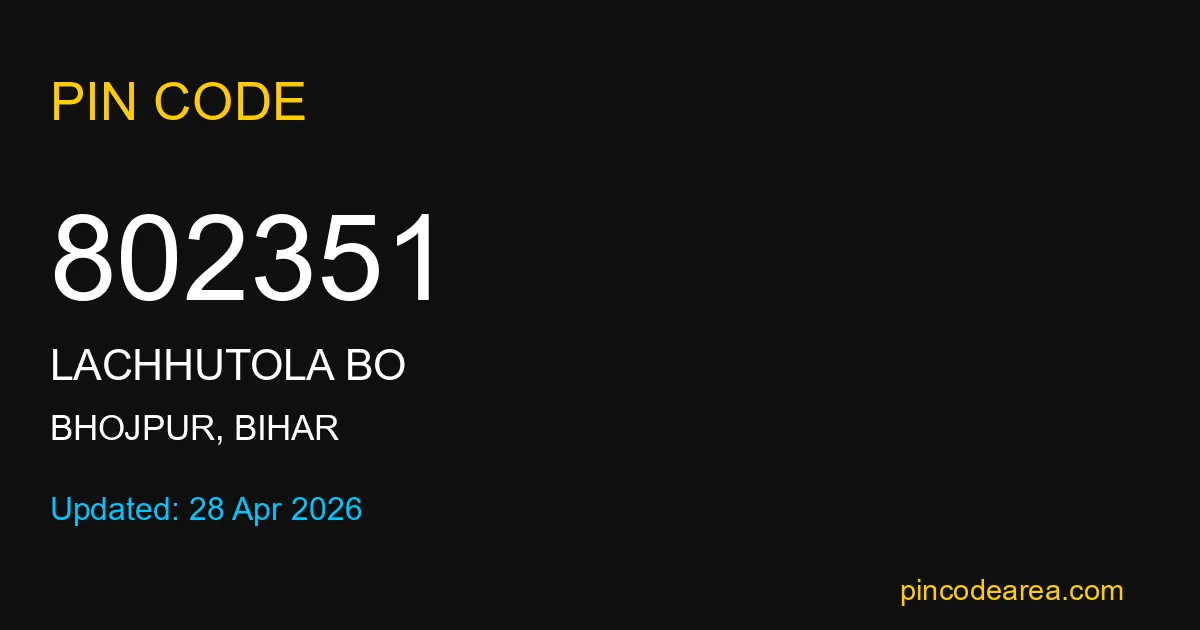 If you are searching for accurate location details, 802351 helps identify the exact postal region of Lachhutola BO in Bihar.