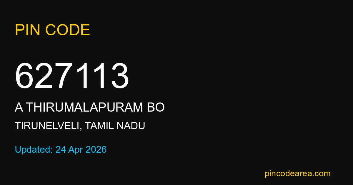 If you are searching for accurate location details, 627113 helps identify the exact postal region of A Thirumalapuram BO in Tamil Nadu.