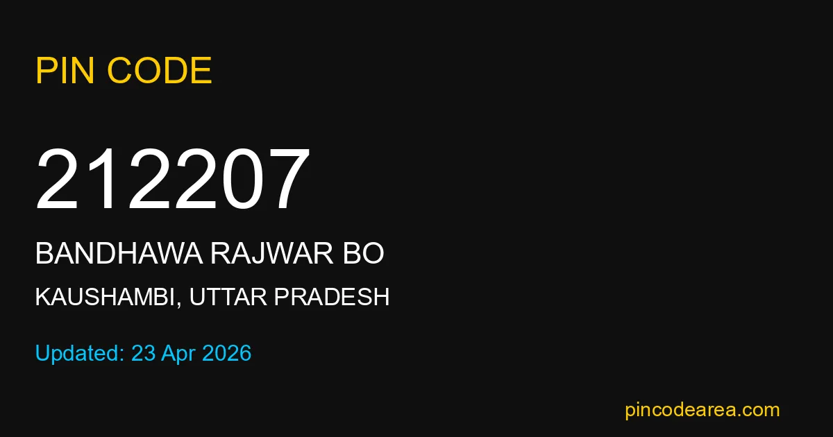 212207 PIN Code is assigned to Bandhawa Rajwar BO Post Office located in Kaushambi district of Uttar Pradesh. It helps in identifying the exact delivery area.