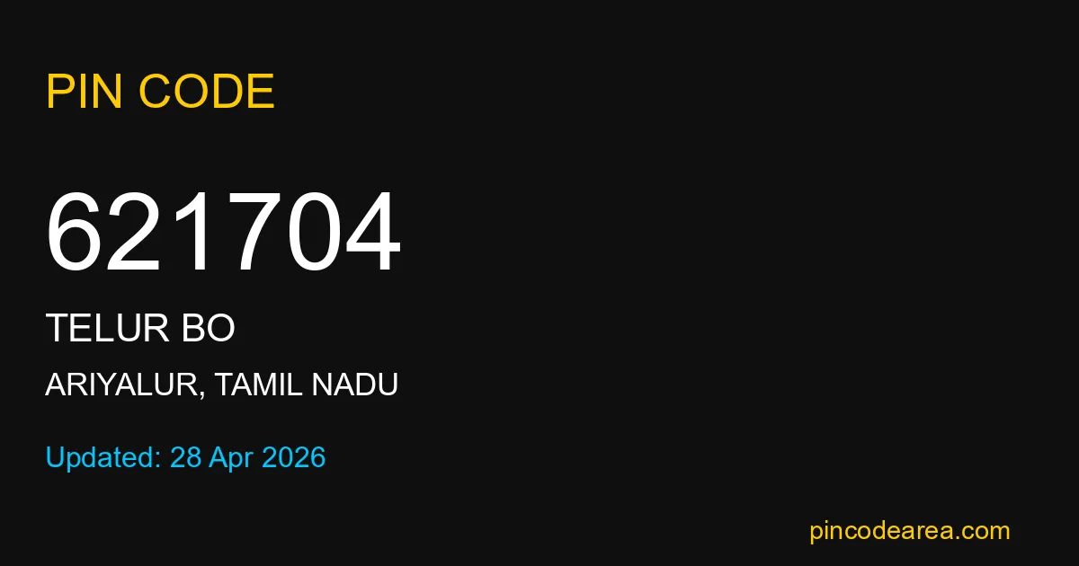 Many users search for 621704 PIN Code to confirm address details, track courier services, and ensure correct delivery location in Ariyalur district.