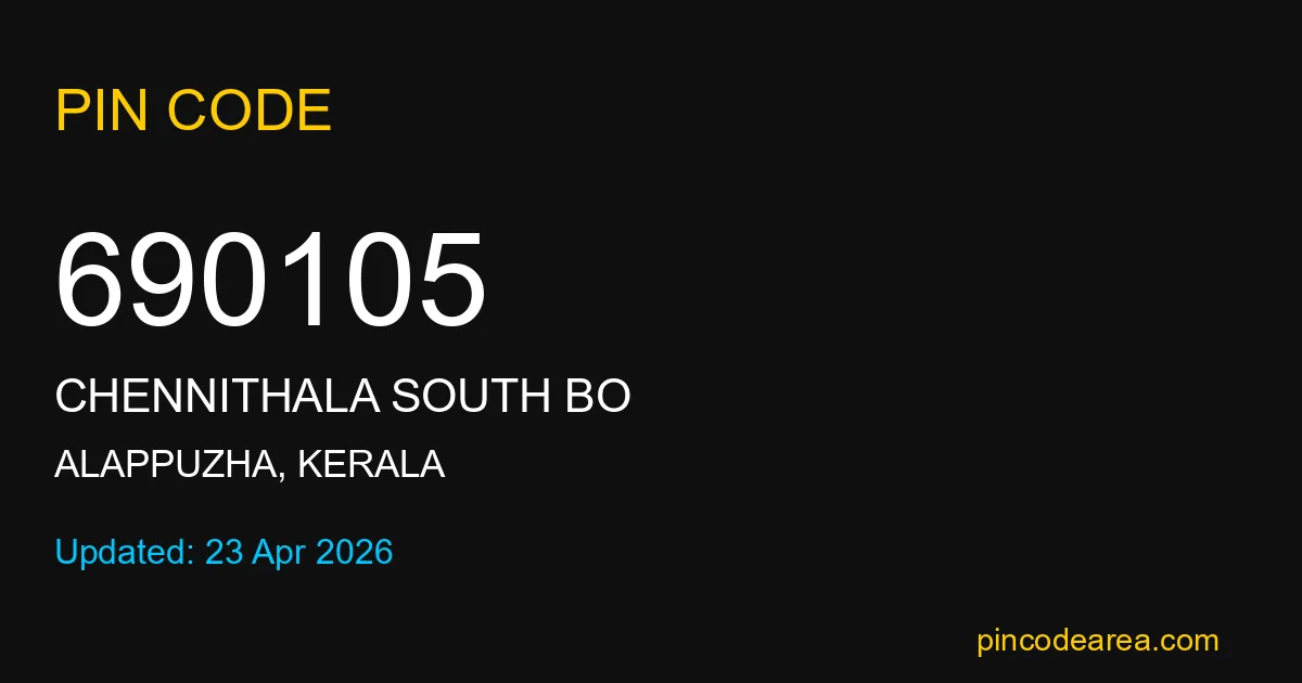 If you are searching for accurate location details, 690105 helps identify the exact postal region of Chennithala South BO in Kerala.