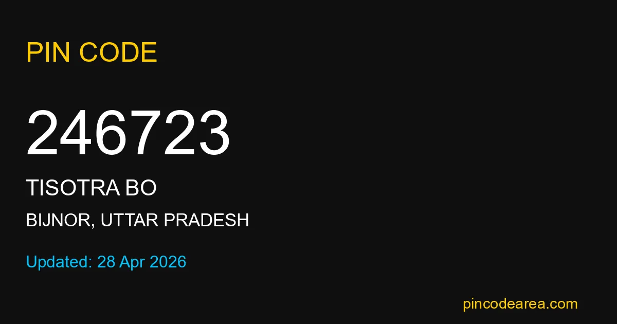 246723 PIN Code is assigned to Tisotra BO Post Office located in Bijnor district of Uttar Pradesh. It helps identify the exact delivery area for postal and courier services.