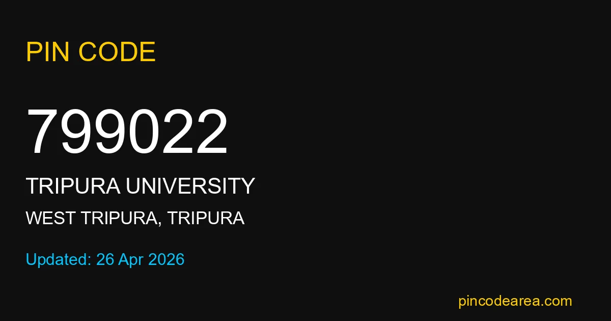 If you are searching for accurate location details, 799022 helps identify the exact postal region of Tripura University in Tripura.