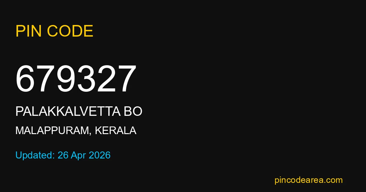 If you are searching for accurate location details, 679327 helps identify the exact postal region of Palakkalvetta BO in Kerala.