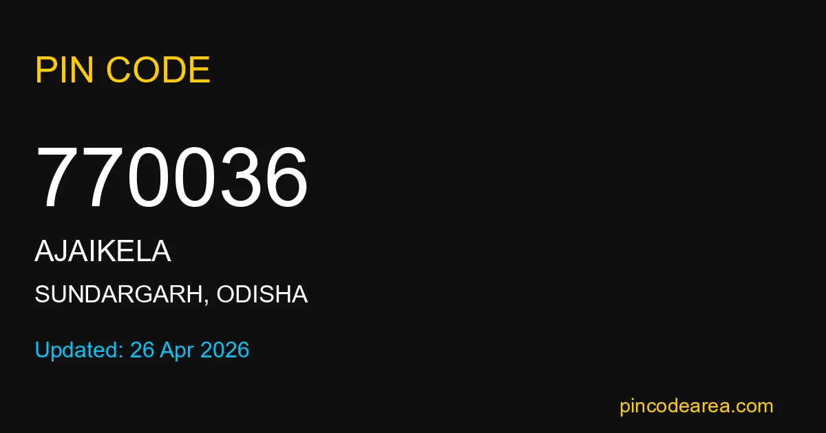 If you are searching for accurate location details, 770036 helps identify the exact postal region of Ajaikela in Odisha.