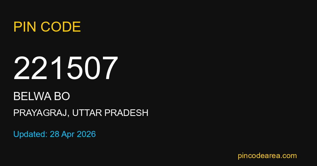 221507 PIN Code is assigned to Belwa BO Post Office located in Prayagraj district of Uttar Pradesh. It helps identify the exact delivery area for postal and courier services.