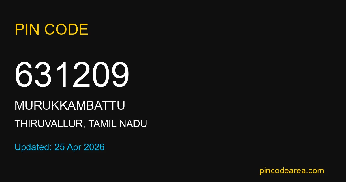 If you are searching for accurate location details, 631209 helps identify the exact postal region of Murukkambattu in Tamil Nadu.
