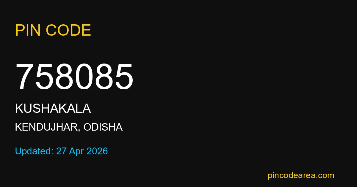 If you are searching for accurate location details, 758085 helps identify the exact postal region of Kushakala in Odisha.