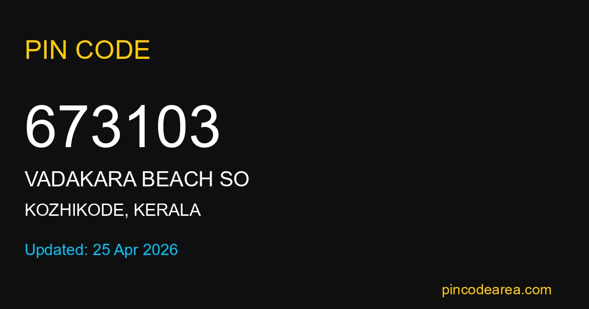 If you are searching for accurate location details, 673103 helps identify the exact postal region of Vadakara Beach SO in Kerala.