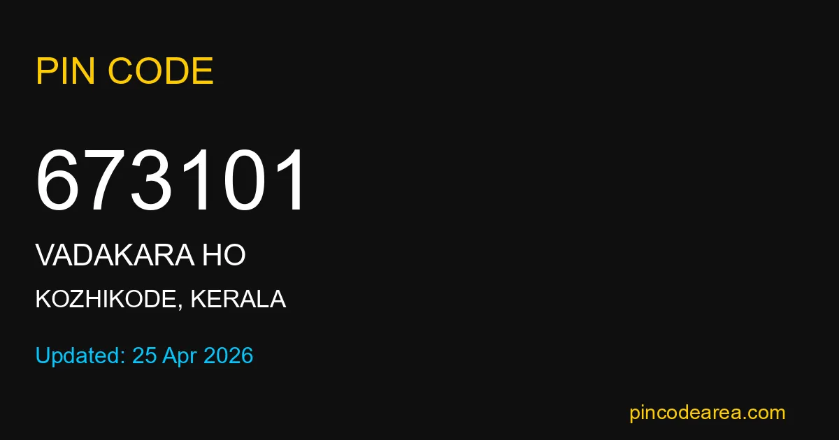 673101 PIN Code is assigned to Vadakara HO Post Office located in Kozhikode district of Kerala. It helps in identifying the exact delivery area.