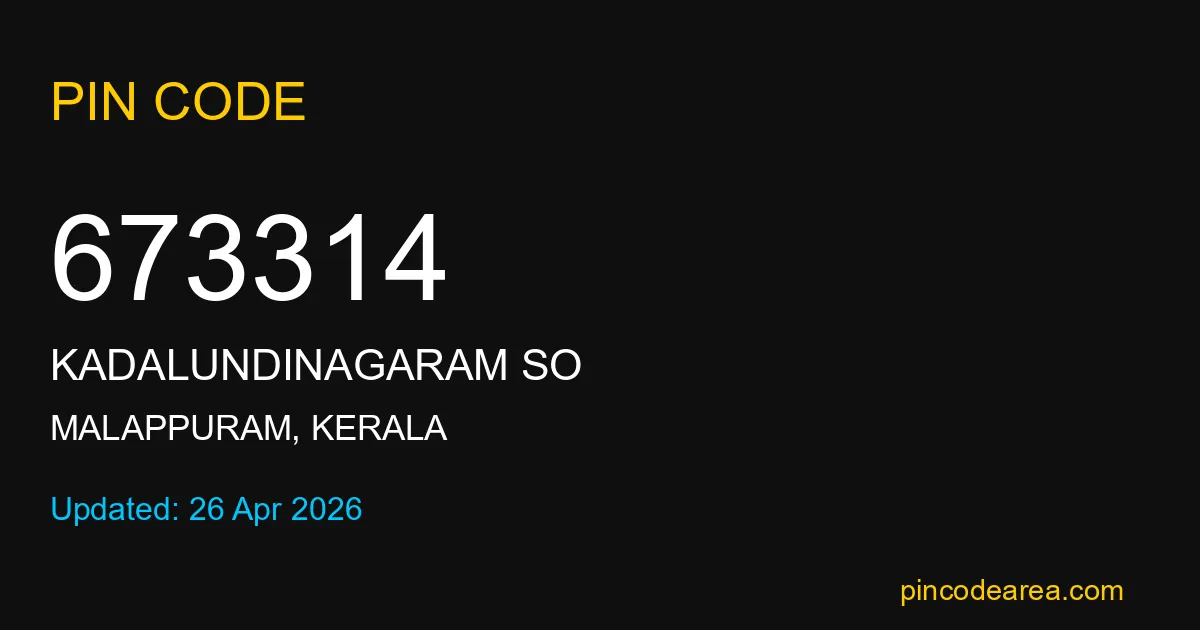 If you are searching for accurate location details, 673314 helps identify the exact postal region of Kadalundinagaram SO in Kerala.