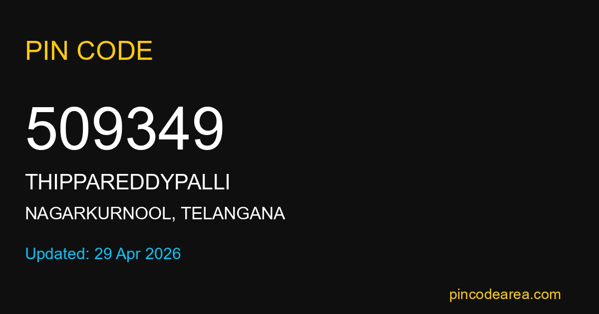 If you are searching for accurate location details, 509349 helps identify the exact postal region of Thippareddypalli in Telangana.